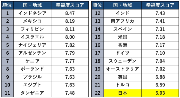 日本の幸福度はかなり低い?